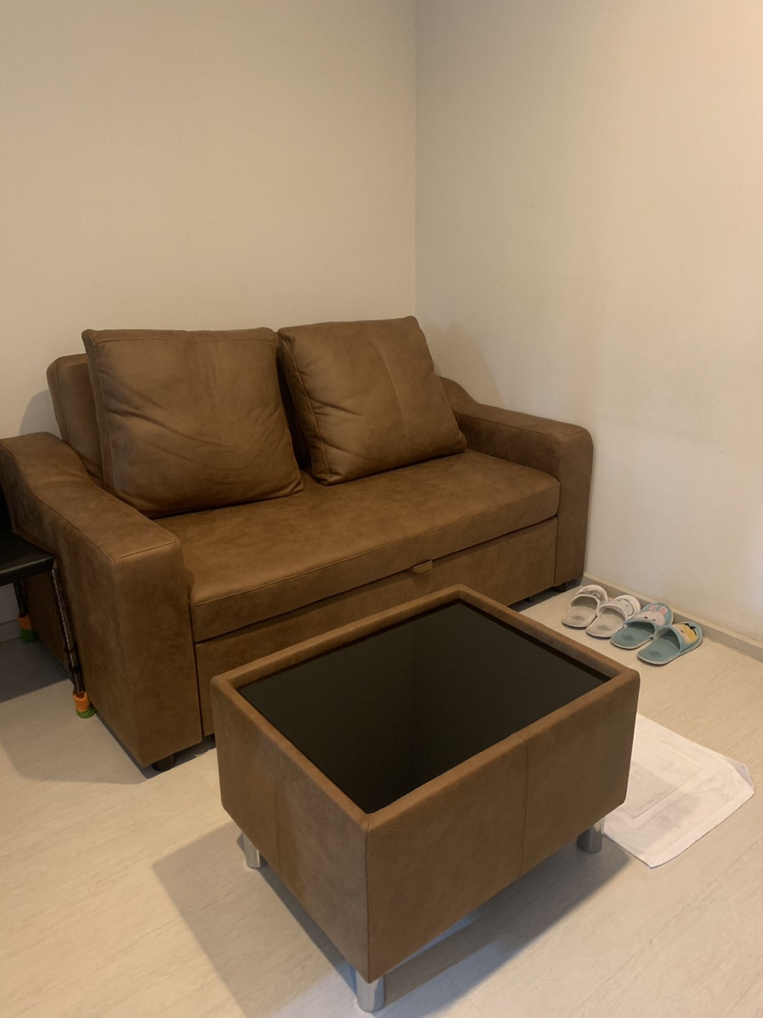 • ทีวี + รีโมท • ชั้นวางทีวี • ตู้เย็น • ไมโครเวฟ • เครื่องทำน้ำอุ่น • โซฟา • เตียงนอน 5 ฟุต + ที่นอน • แอร์ห้องนั่งเล่น + ห้องนอน (พร้อมรีโมท) • ผ้าม่าน และมู่ลี่ห้องครัว